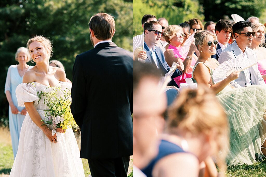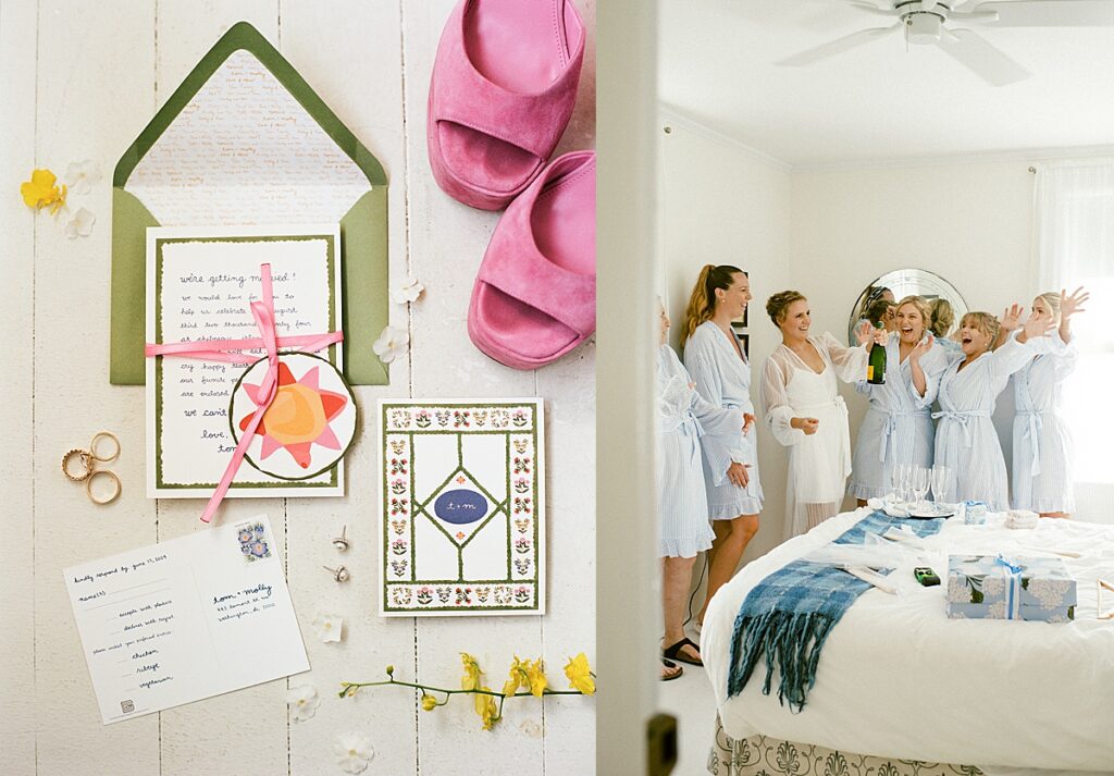 On wedding day, the energy was calm, connected, and full of love. Guests did morning yoga on the lawn, Tom golfed with friends, and Molly’s sisters created a glam station that doubled as a family hangout. Molly even sprinted outside in her pajamas to kiss Tom between holes—because why not?