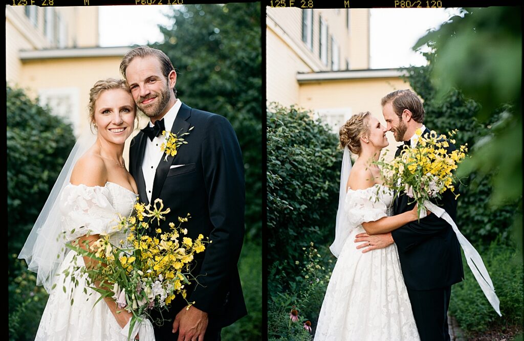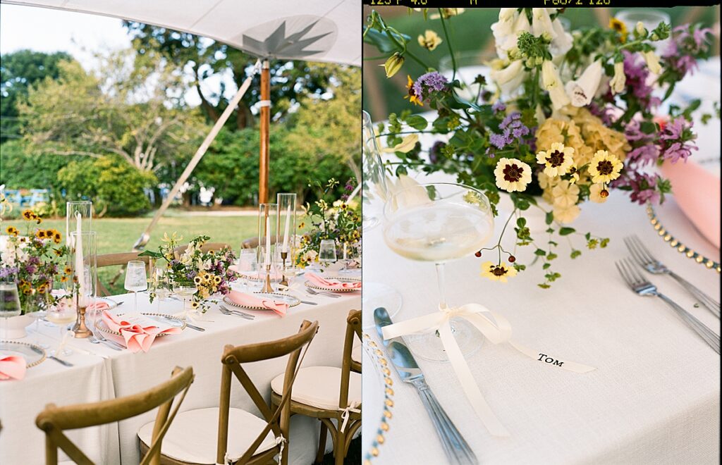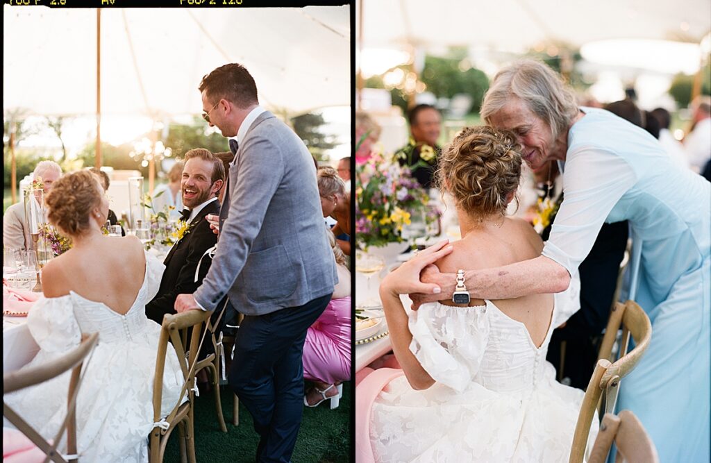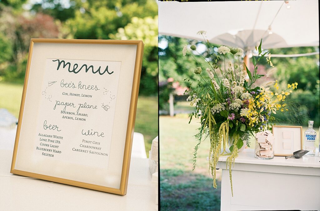 There was no strict color palette or formal dress code. The vibe was “fancy backyard dinner party” meets slightly-glam coastal Maine. Molly wore a secondhand dress. Guests were encouraged to shop their closets. Florals were wild and whimsical. And they even picked blooms from the inn’s garden for Molly’s bouquet that morning.